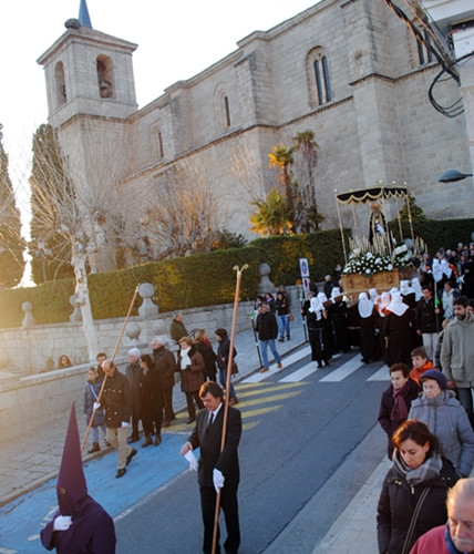 Con el constante eco de tambores y cornetas elevando las partituras una vez más interpretadas con acierto por los músicos de la Banda de la Tenería, protagonista a la hora de poner el son y marcar el ritmo, en contraste con el anónimo silencio que encarna la figura del penitente, y sumando la permanente atención de los miembros de las dos Hermandades, la de la Esclavitud del Santísimo Sacramento y la Esperanza, que unen esfuerzos y voluntad para asegurar que esté siempre todo a punto a la hora de honrar la Pasión. Sobre estas ‘andas’, premisas destacadas, se cifró la intensidad de las tres jornadas en las que este pueblo echa a andar, literalmente, siguiendo pura estela de tradición. Una realidad a la que presta su apoyo el Ayuntamiento, en su intento por garantizar la seguridad y restantes aspectos que permiten el normal trascurrir de los diferentes desfiles. Una disposición que incluso el párroco quiso agradecer públicamente, al colaborar para fechas tan señaladas se vivan con la emoción que ha de presidirlas, reportando una vibrante estampa que gusta, tanto a los locales como a quienes se animen a descubrir en estas fechas el municipio, un pueblo que entre las muchas imágenes de estos días supo ser espacio para la saeta, tiempo de sonoros redobles de tambor y toques de corneta y de los instrumentos acompañantes que resonaron de modo tan especial en la iglesia, un Valdemorillo, en suma, que sabe ser escenario para el coraje de los hombres que portaron el paso de la tradición elevándolo a cada levantá y en ese movimiento coordinado que avivar sentimientos, y también para el empuje de las mujeres guiando su parte dentro la doble y simbólica comitiva que despide la Pascua. Sí, sonora, cercana, vistosa, propia del lugar y sobre todos, obra de sus gentes. Esta fue y es la Semana Santa de Valdemorillo.