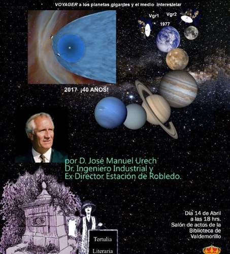 Al cumplirse algo más de cuatro décadas desde que despegara la misión Voyager de la NASA, el colectivo que preside Pilar Rodríguez ha querido contar con la presencia como ponente de Juan Manuel Urech el 14 de abril. La cita, abierta al público, en el salón de actos del Edificio María Giralt, a partir de las 18,00 horas
